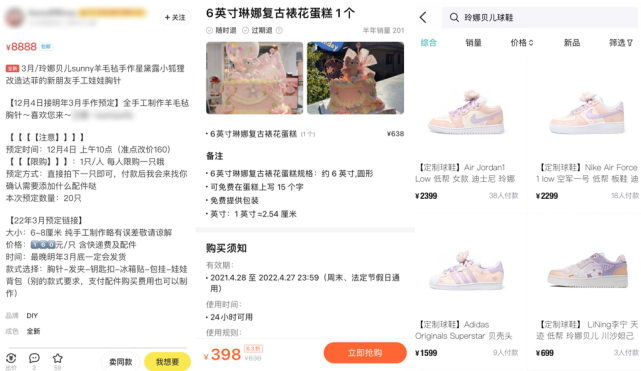 做公仔改造、定制玲娜贝儿蛋糕、羊毛毡等靠手工艺“吃饭”的卖家,虽然赚取的客单价高,但因为 DIY 的难度系数大、操作起来略有不慎就容易失误,也常面临着被顾客投诉的风险。此前,明星程潇收到“低配版”玲娜贝儿蛋糕的话题,甚至登上了微博热搜。