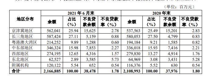 从围绕重庆、成都、西安布局的西部地区来看,上半年营业收入56.33亿元,比上年同期关系少3.01%。营业利润33.55亿元,比上年同期增加337.24%。其不良贷款余额43.16亿元,不良贷款率为1.57%。
