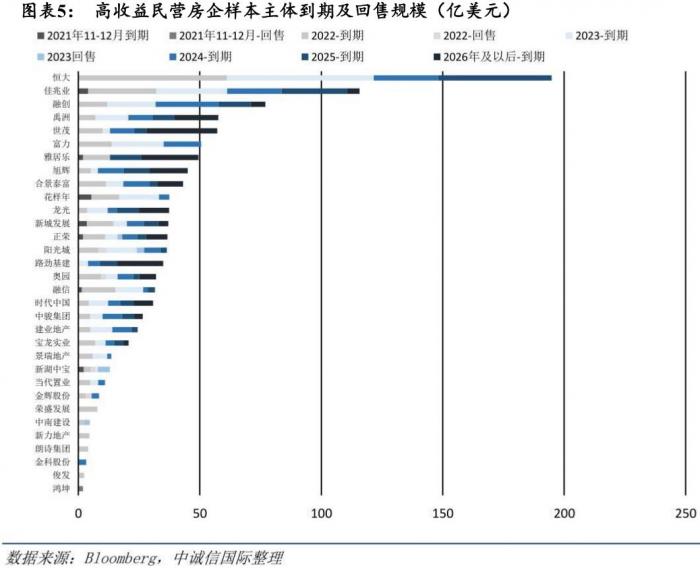 中信证券认为,对于民营房企,明年一季度境内债券尚不构成到期压力,但发行的美元债将进入偿债高峰;中诚信国际也认为高收益民营房企样本主体将于明年一季度迎来一轮偿债高峰。