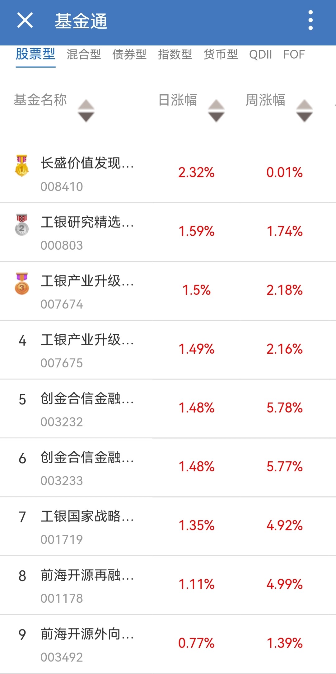南财基金通日涨幅排行榜