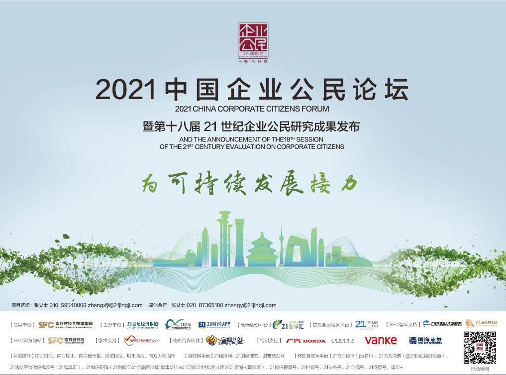 由《21世纪经济报道》举办的2021年中国企业公民论坛暨第十八届中国企业公民研究成果发布会将于12月下旬举办。