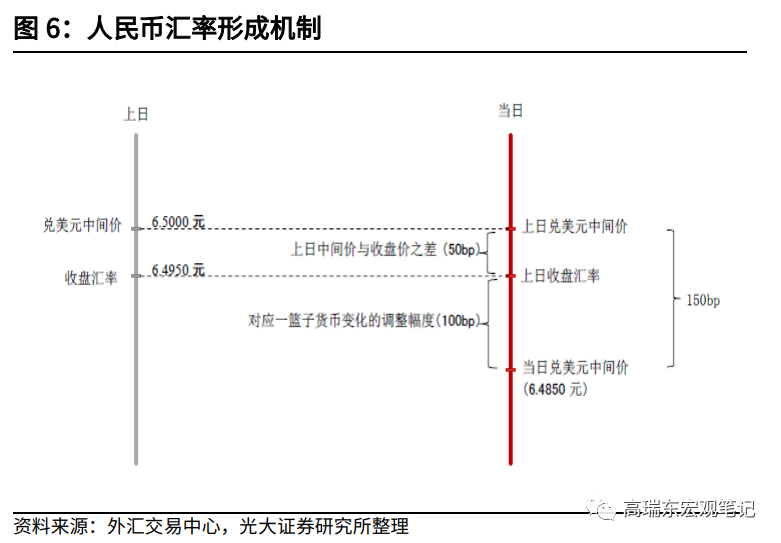 CFETS人民币汇率指数参考的CFETS货币篮子,具体包括中国外汇交易中心挂牌的各人民币对外汇交易币种,样本货币权重采用考虑转口贸易因素的贸易权重法计算而得。考虑到在CFETS货币篮子所包含的24种货币中,美元的权重高达22.4%,此外,多边汇率也以中美双边汇率为基础根据三角套汇套算而来,所以,目前对人民币汇率影响最大的仍然是美元。