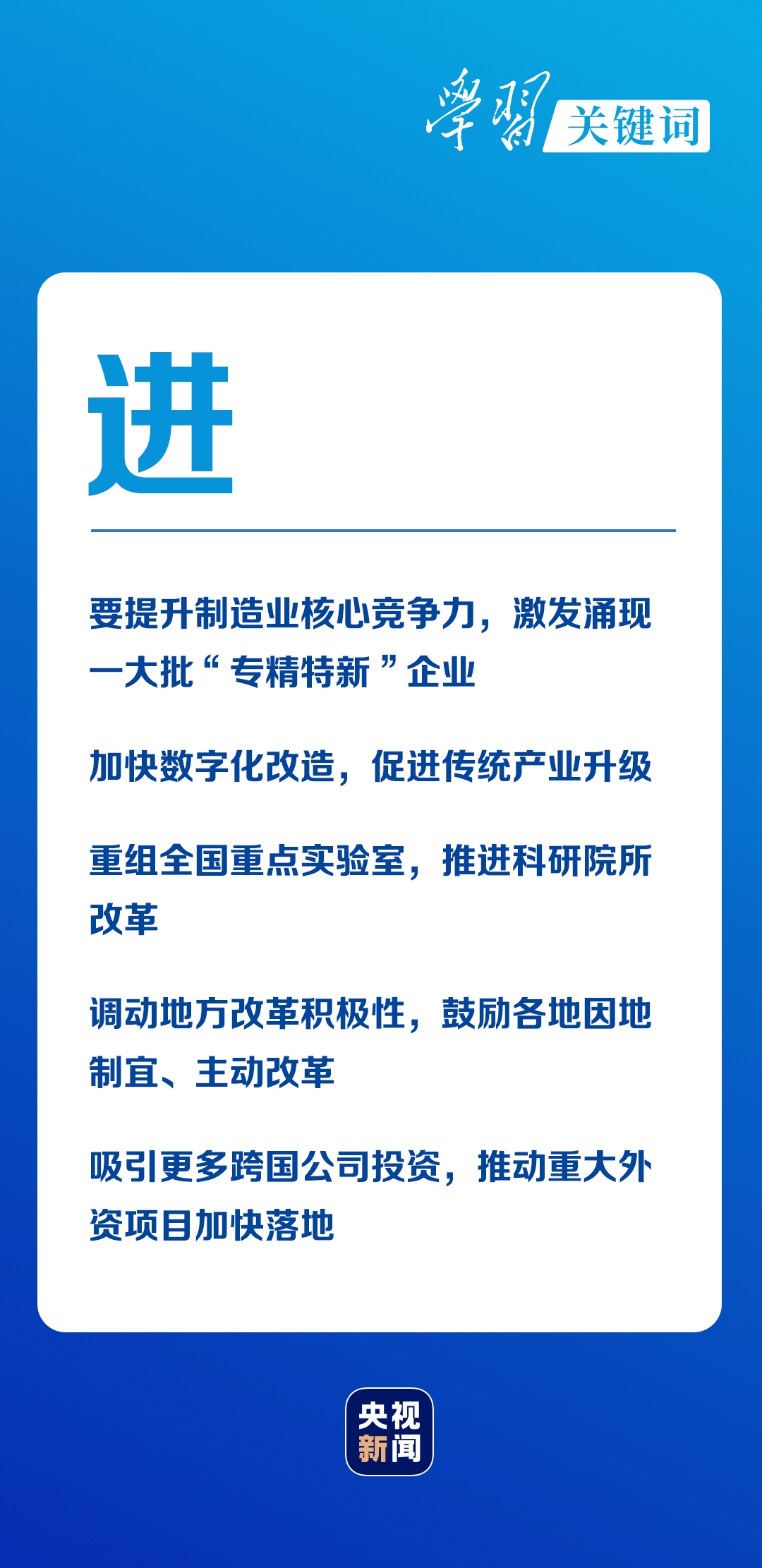 要深化重点领域改革、更大激发市场活力和发展内生动力、运用市场化机制激励企业创新投入、扩大高水平开放......稳中求进,稳是主调,是大局;而进是方向,是目标。