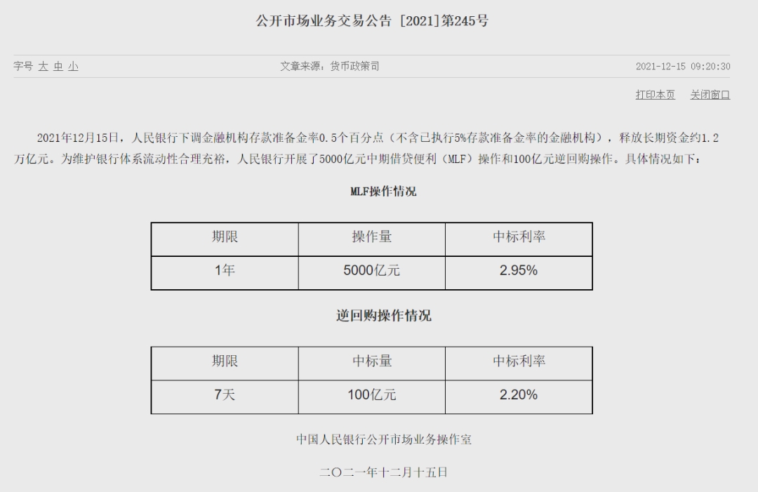 今天,万亿降准正式生效。12月的“麻辣粉”(中期借贷便利,MLF,市场俗称“麻辣粉”)按时上桌,如期缩量续做,操作利率则没变!