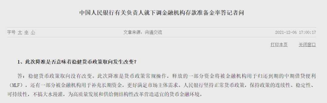 市场人士分析,进入12月,人民银行恢复每日100亿元逆回购操作规模,加之缩量续做到期MLF,公开市场操作净回笼部分资金,以对冲全面降准一次性释放的大量流动性,避免“大水漫灌”,体现了“保持流动性合理充裕”的态度。