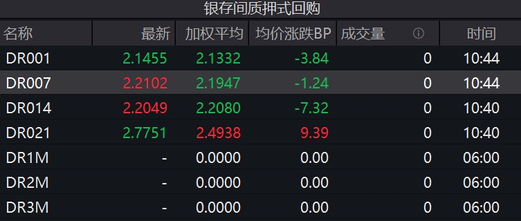15日上午,货币市场表现“淡定”,主要货币市场利率小幅走低。截至10:45,最有代表性的DR007加权平均利率下行1个基点,报2.19%,与7天期央行逆回购利率也仅差1个基点。