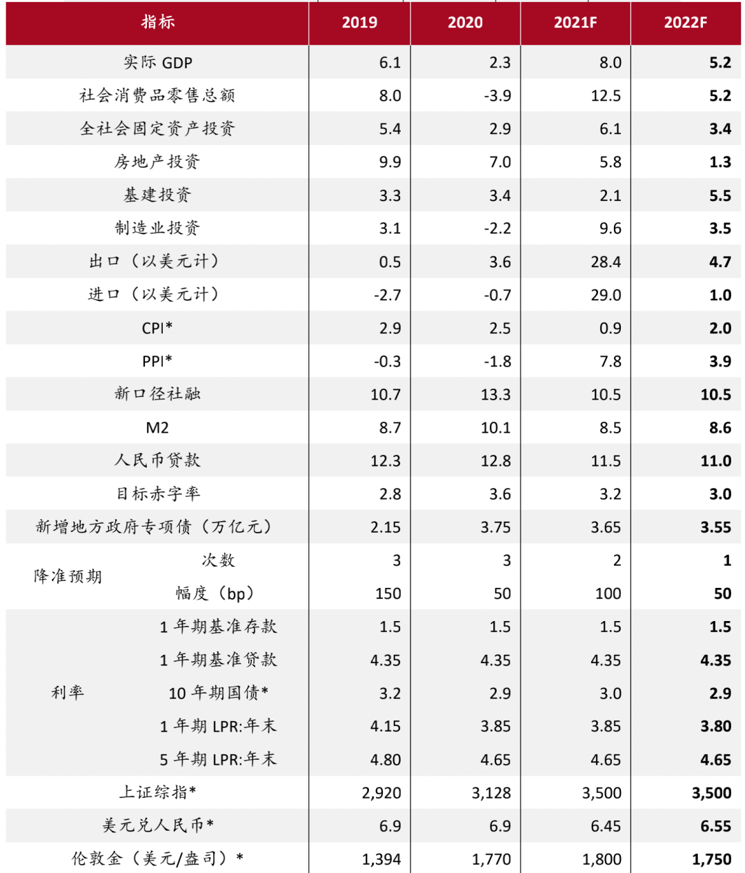 2022年中国经济预测表