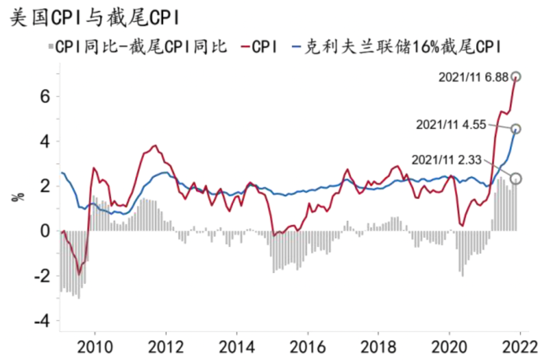 1、截尾CPI是达拉斯联储发布的排除变动最大和最小的8个百分位的项目后的CPI增速。