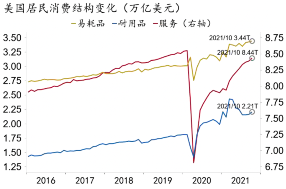 图4:美国商品消费对服务消费形成替代