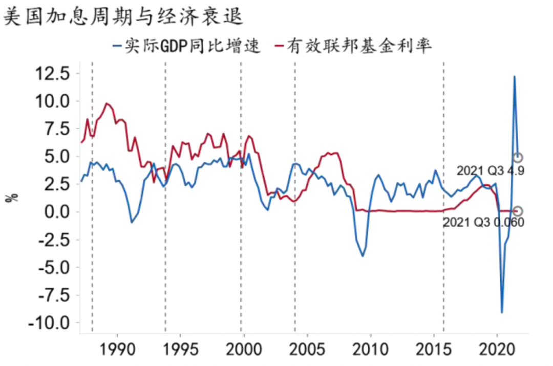 图35:美联储首次加息2-4年后美国经济下行