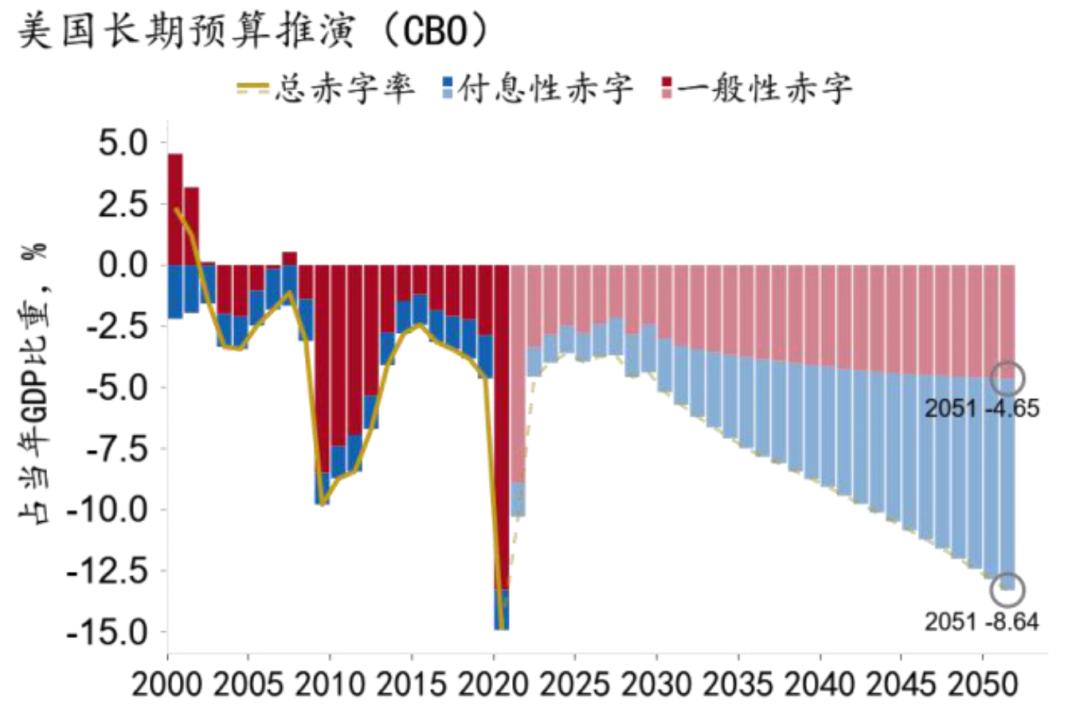 图36:付息赤字将在2035前后超越一般赤字