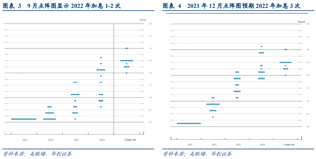 (三)经济预测与点阵图:2022年加息预期提前至3次