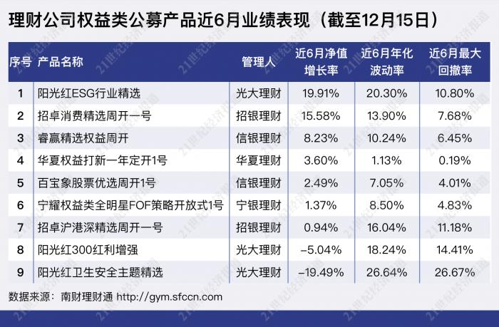 一、【理财风云榜】理财公司权益类公募产品-近6月净值增长率榜单