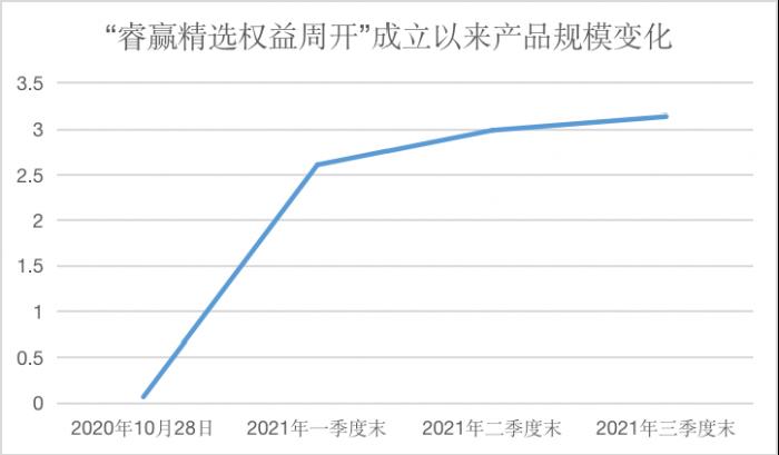 (“睿赢精选权益周开”成立以来产品规模变化,数据来源于产品成立公告和运作报告)