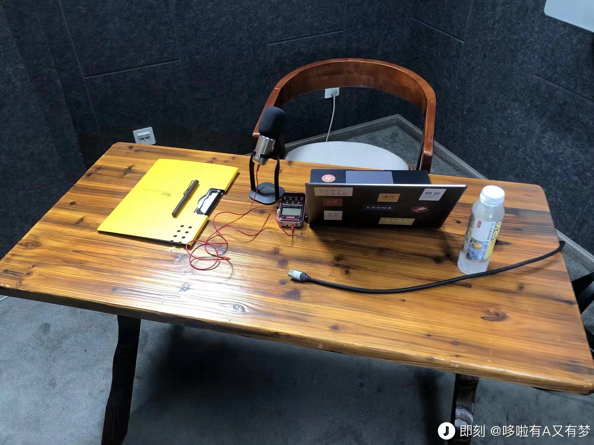 图:开言扯空的音频录制设备,电脑旁边的是用了8年的录音笔