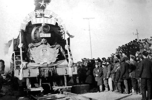 1962年12月9日,随着长鸣的笛声,兰新铁路铺轨机抵达新疆乌鲁木齐。至此,全长1903公里的兰新铁路全线竣工,祖国西北重镇乌鲁木齐通过现代化的钢铁大道,与全国各地连接在一起。