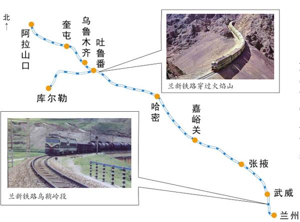 1952年10月1日,兰新铁路在兰州破土动工,1958年12月铺轨越过甘肃、新疆交界的红柳河,正式进入新疆境内,新疆从此结束了没有铁路的历史。时任哈密车务段扳道员靳殿臣说,尽管自然条件无比恶劣,建设者们依然凭借顽强的意志,逢山开路,遇水架桥,将铁路一点点延伸到新疆。
