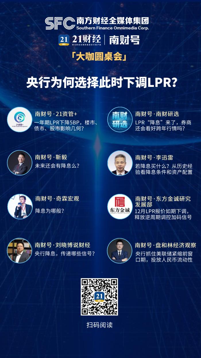 12月20日,中国人民银行授权全国银行间同业拆借中心公布,2021年12月20日贷款市场报价利率(LPR)为:1年期LPR为3.8%,上个月为3.85%;5年期以上LPR为4.65%,与上月持平。央行为何选择此时下调一年期LPR,背后有何深意?对楼市、股市、债市有哪些影响?未来还会继续降息吗?南财号《大咖圆桌会》为您解读。点击进入专题>>