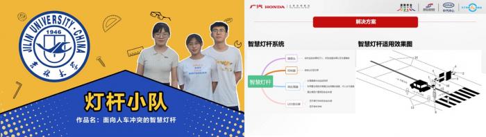 来自吉林大学灯杆小队的一等奖作品则指向了智慧交通未来,通过“智慧灯杆”系统来解决无信号控制的交叉口行人与车辆的冲突问题,其前瞻性与实用性也深受好评。