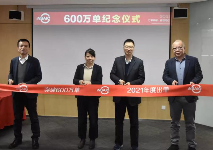 在“2021·万单突破·你我同行”纪念活动的现场,上汽保险销售总经理金麒、党总支书记王真真携党政班子领导一同为一车通保“突破600万单”剪彩纪念!
