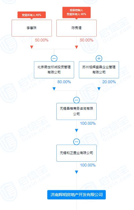 启信宝数据显示,济南辉明地产成立于2016年9月21日,法定代表人是于民,该公司的控股股东是无锡和正置业有限公司,实际控制人是李惠珠与陈秀清。
