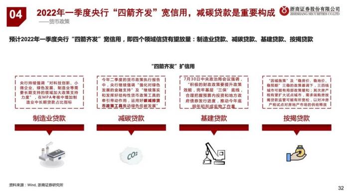 其中“四箭”分别指制造业贷款、减碳贷款、基建贷款、按揭贷款;二季度,在4月中央政治局会议之后,将再度强调控制宏观杠杆率,注重结构调整,因此或淡化经济增长,宽信用政策可能出现适度回调,二季度经济增长趋于回落;三四季度,李超认为由于2021年基数较低,政策只需稍作刺激,经济增长可以出现表观向上,迎接二十大。