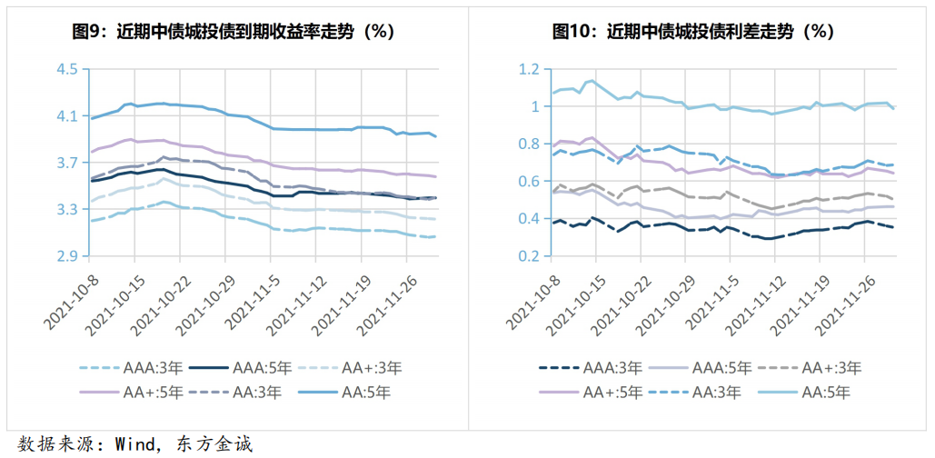 11月城投债到期收益率整体下行,利差窄幅波动;二级市场交易活跃度显著回暖,异常交易债券大幅增加。