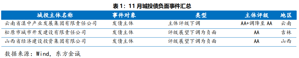 11月,地方债务风险管控的监管主线仍在延续;当月城投债涉及负面事件主体环比增加。