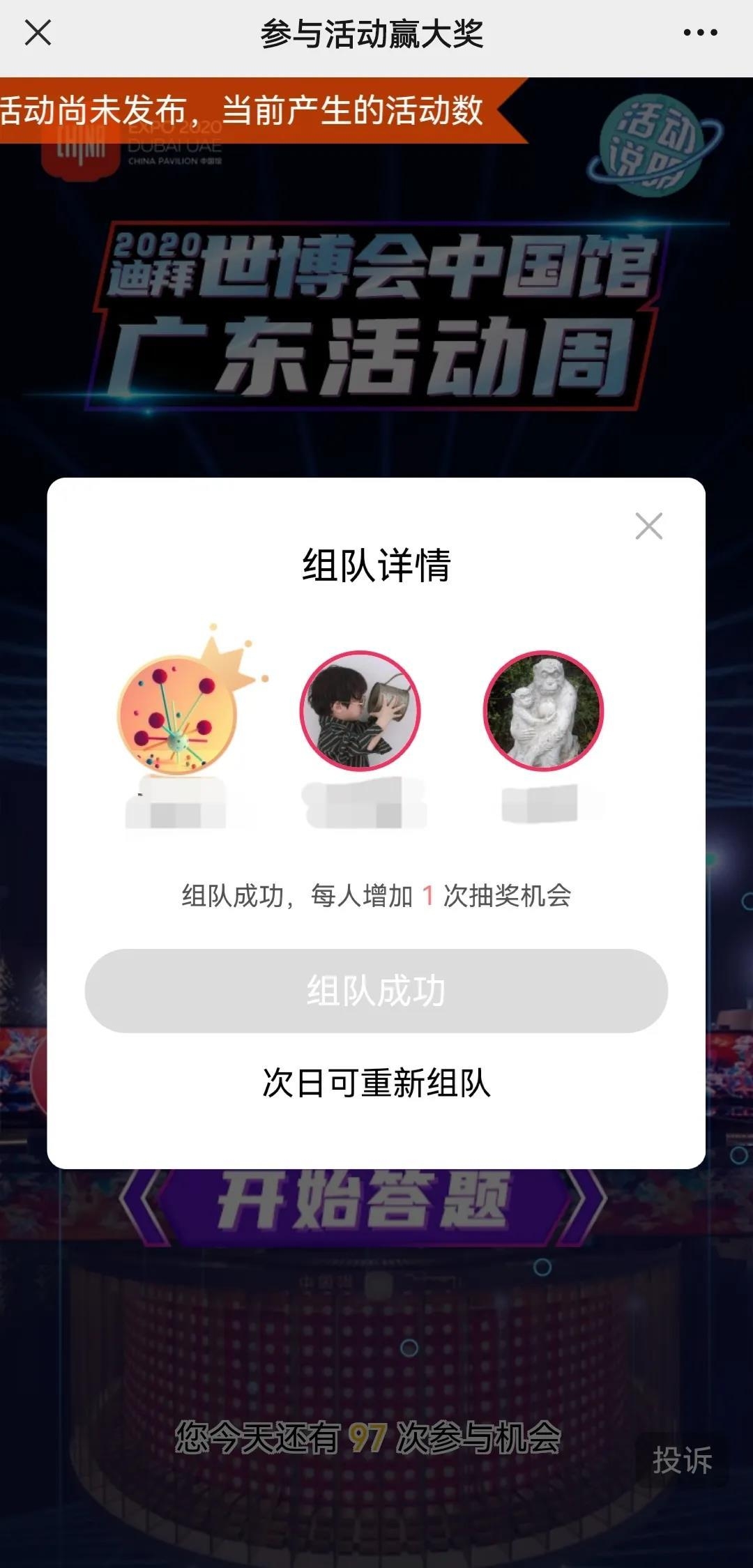 若想获得额外抽奖机会,你可以组队参与,点击红色按钮【组队参与】,在限定时间内组队成功,即可解锁新玩法。