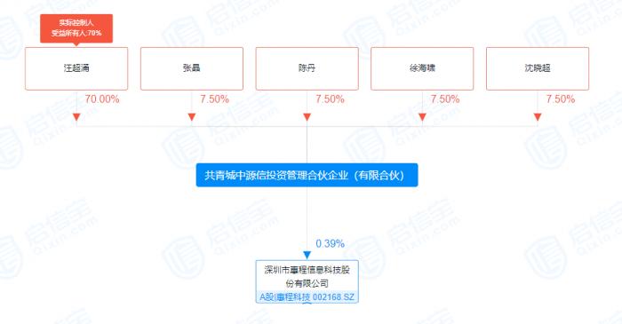 启信宝数据显示,中源信为汪潮涌(即汪超涌)持股70%的公司。