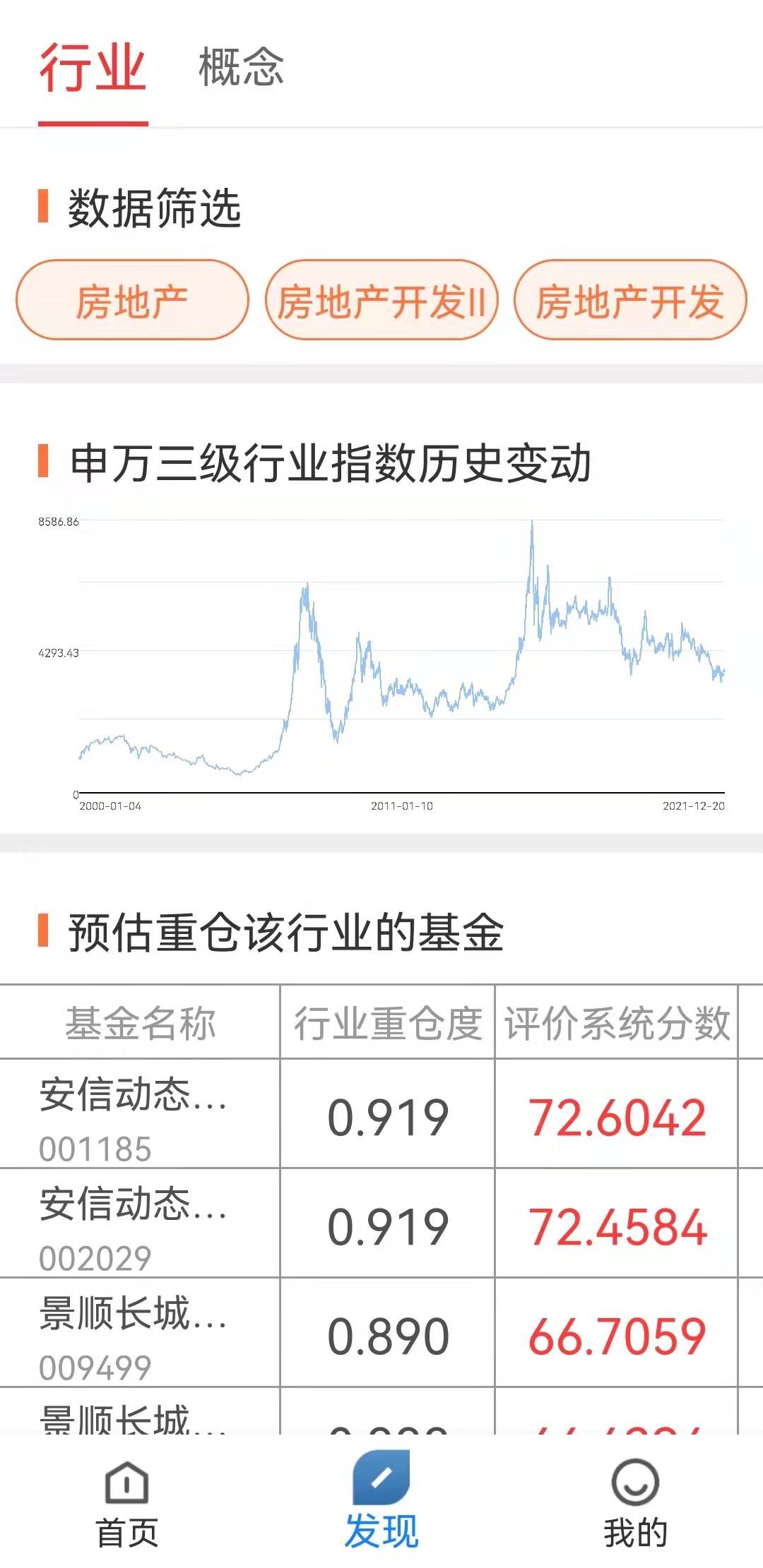 从排名第一的基金里可以看到,它的房地产行业重仓度为0.919,相关度高。