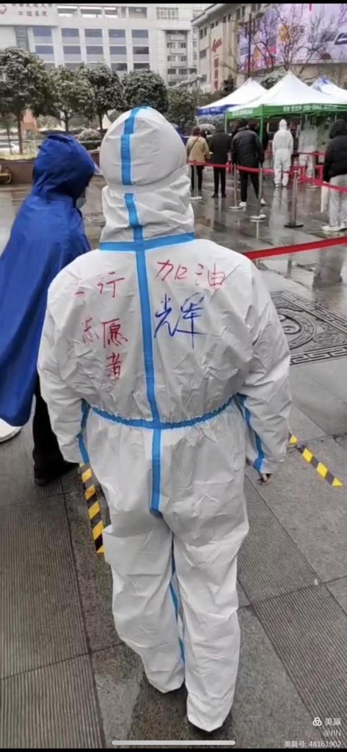 防护服和口罩虽然遮住了志愿者的容颜,但这份坚守和奉献的微光,必将汇聚起来,凝成战胜一切艰难险阻的强光,冲破阴霾,照亮人间!