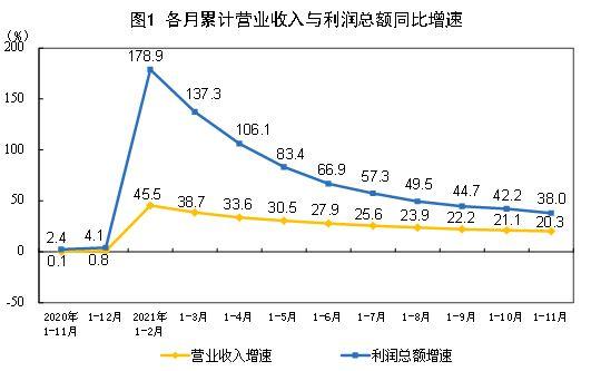 国家统计局12月27日发布的数据显示,11月份全国规模以上工业企业利润同比增长9.0%,增速较上月回落15.6个百分点,两年平均增长12.2%。1—11月份,规模以上工业企业利润同比增长38.0%,两年平均增长18.9%,增速继续保持较高水平。