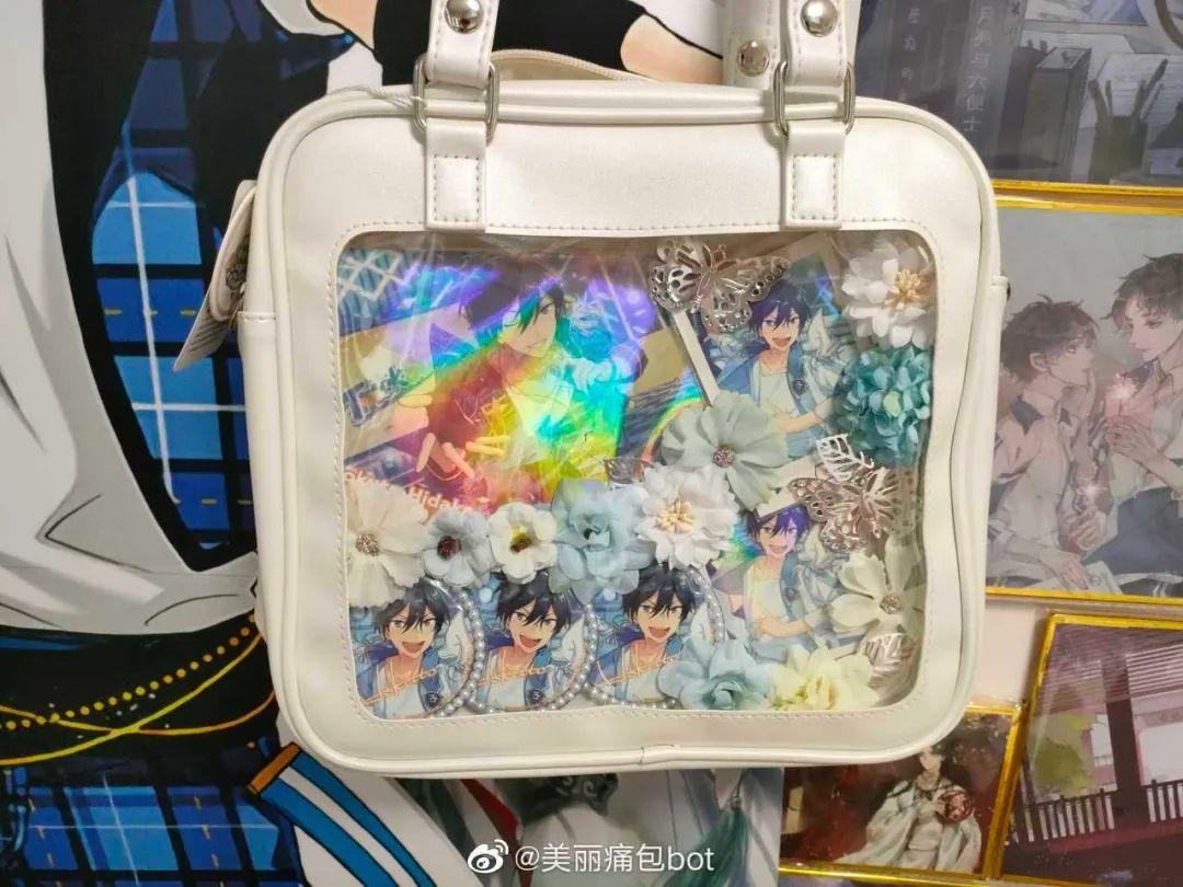 痛包:是指挂满“谷子”的包包,这样的包包会让人觉得很奇怪,在日文里“痛”有怪异的意思,故而称之为痛包。(如下图)