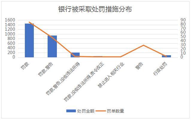 上周银行业被采取最多的处罚措施依然为罚款,其次是罚款、警告,第三是警告。三者开出的罚单数量分别为85、48和29。
