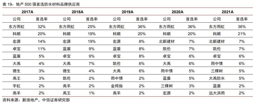 而除防水业务获地产商首选率第一之外,公司建筑涂料、建筑修缮、砂浆、保温材料等均获地产商首选率前三,品牌优势明显。