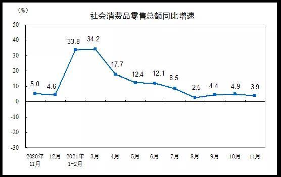 从消费端来看,今年1月到11月份,社会消费品零售总额同比增长13.7%,两年平均增长4%,也比往年低很多。背后原因,一是疫情对居民收入产生了负面的影响;此外,服务业的恢复也是远远不及预期的。