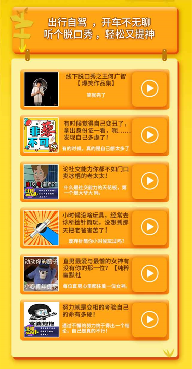 最新推出的国庆7天长假收听指南中,包含了契合车载场景的脱口秀精彩合集,有了国庆最热收听播单,出行路上轻松又提神。脱口秀是荔枝平台上的热门内容,荔枝拥有一批优质脱口秀主播,包括北京话事人,怡楽电台,黑水公园等,大家在荔枝App里可以找到各种精彩脱口秀节目,旅途更加欢乐。