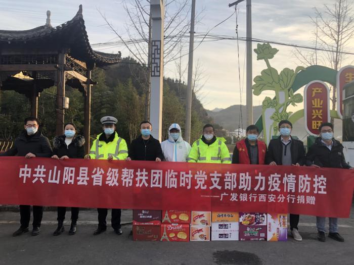 迅速响应号召,奏响疫情防控“集结号”。广发银行西安分行党委始终高度牵挂定点帮扶村防疫工作开展与实际需求,作为国家级乡村振兴重点帮扶县——山阳县的省级帮扶团临时党支部支委成员单位,该行积极响应支部提出的“共筑疫情防线”的倡议,在山阳县副县长、临时党支部书记白海峰同志的带领下,广发银行驻村第一书记、临时党支部委员孙兴强同志及时向分行汇报并积极筹措,为帮扶地区的漫川关镇高速出口、小河口陕鄂交界和李家坪村三个防疫执勤点送去急需的口罩、消毒液、体温枪等防疫物资和面包、方便面、八宝粥、电褥子等生活用品,为疫情防控贡献广发力量。
