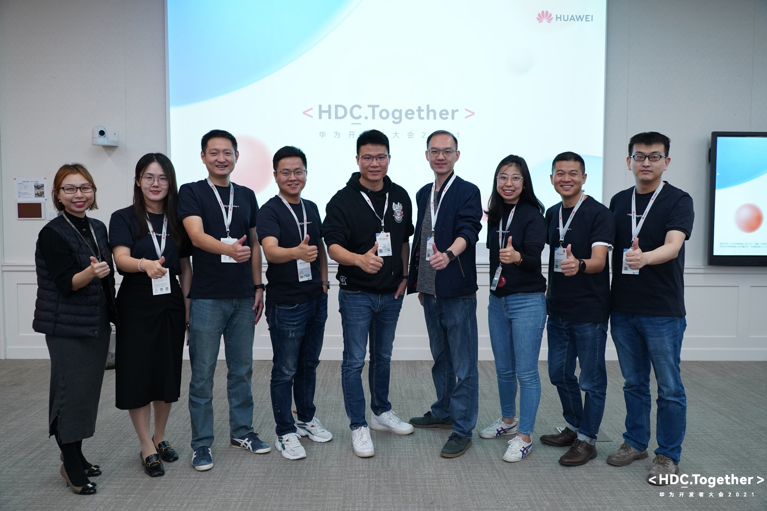 荔枝集团技术副总裁李锦艺(中)参加华为开发者大会