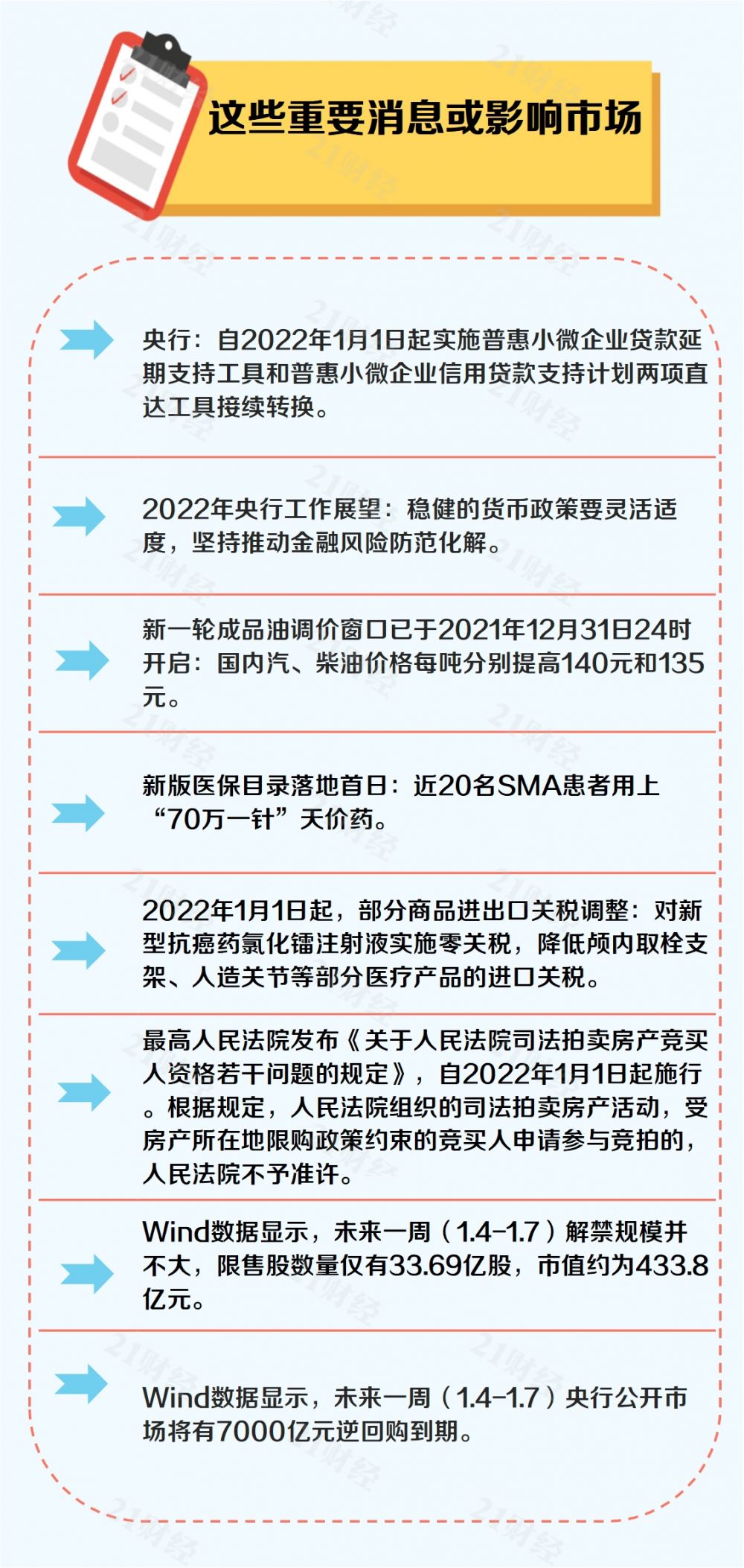 未来一周(1.4-1.7)限售股解禁市值约为433.8亿元;