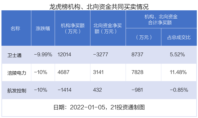 值得注意的是,机构和北向资金共同净买入了涪陵电力等1股;在航发控制,卫士通上出现分歧,机构净卖出航发控制1413.51万元,北向资金净买入432.43万元;机构净买入卫士通1.2亿元,北向资金净卖出3277万元。
