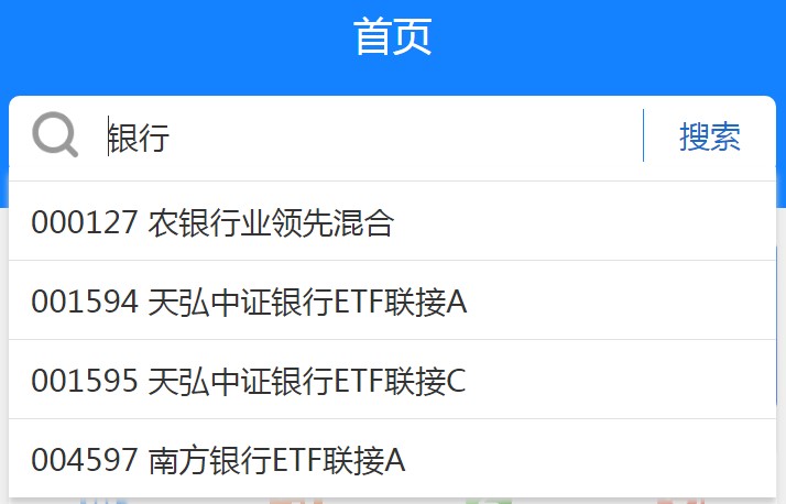 在基金通APP中,我们通过搜索“银行”,来选择投资跟踪银行的相关指数基金进行配置。