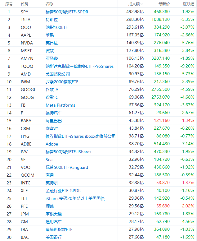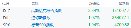 美联储会议纪要释放鹰派信号,美股三大指数收盘集体下挫,道指跌1.07%,标普500指数跌1.94%,纳指跌3.34%。