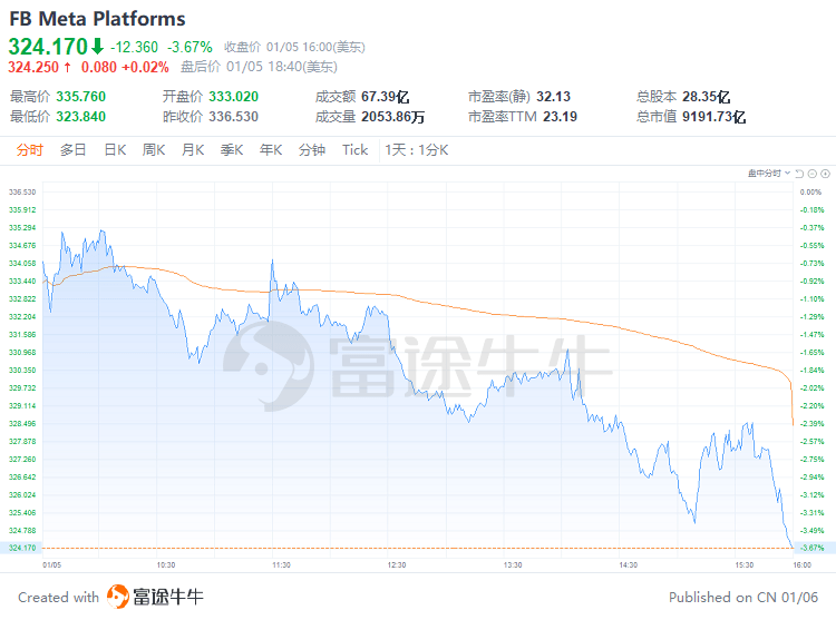 Meta跌超3%,消息称Meta停止开发VR/AR操作系统