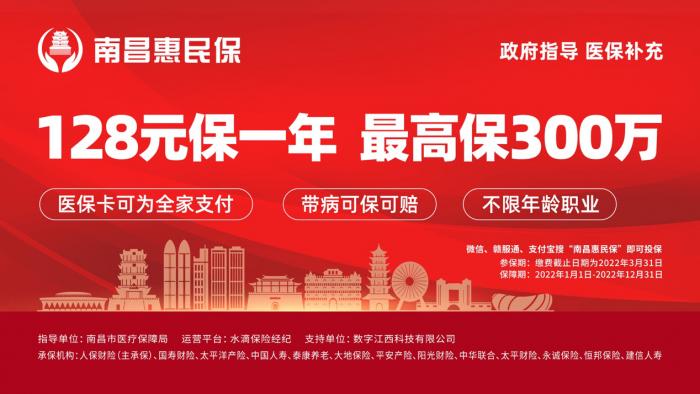 “南昌惠民保”正式上线!每年128元,保额最高可达300万元