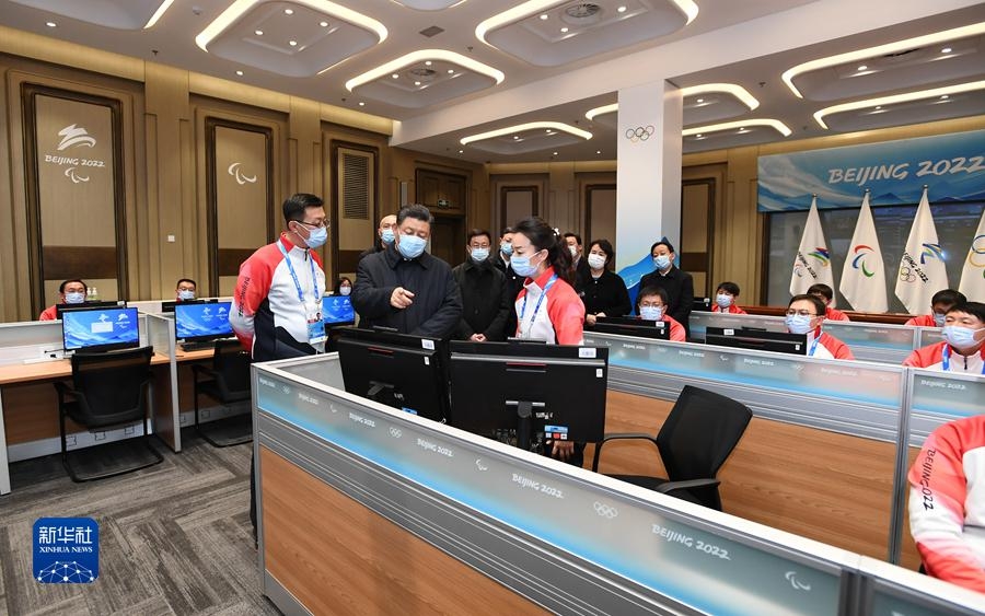 1月4日,中共中央总书记、国家主席、中央军委主席习近平在北京考察2022年冬奥会、冬残奥会筹办备赛工作。这是4日下午,习近平在北京冬奥运行指挥部调度中心考察。新华社记者谢环驰摄