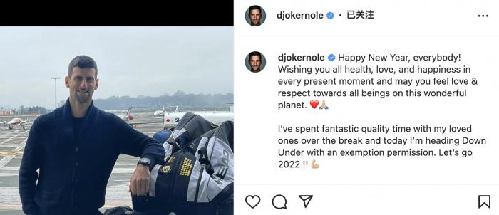1月4日,德约科维奇在社交网络发文称,已经确认获得了豁免,可以前往澳洲参加年度首项大满贯赛事——澳网。
