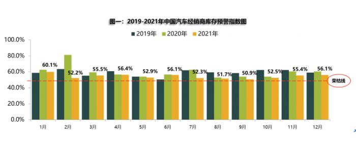 日前,中国汽车流通协会发布的最新一期“中国汽车经销商库存预警指数调查”VIA(Vehicle Inventory Alert Index)显示,2021年12月汽车经销商库存预警指数为56.1%,同比下降4.6个百分点,环比上升0.7个百分点,库存预警指数位于荣枯线之上。