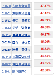 排名前10的指数基金基本都属于主题指数类型,涉及的主题包括有色金属、新能源、煤炭、钢铁。